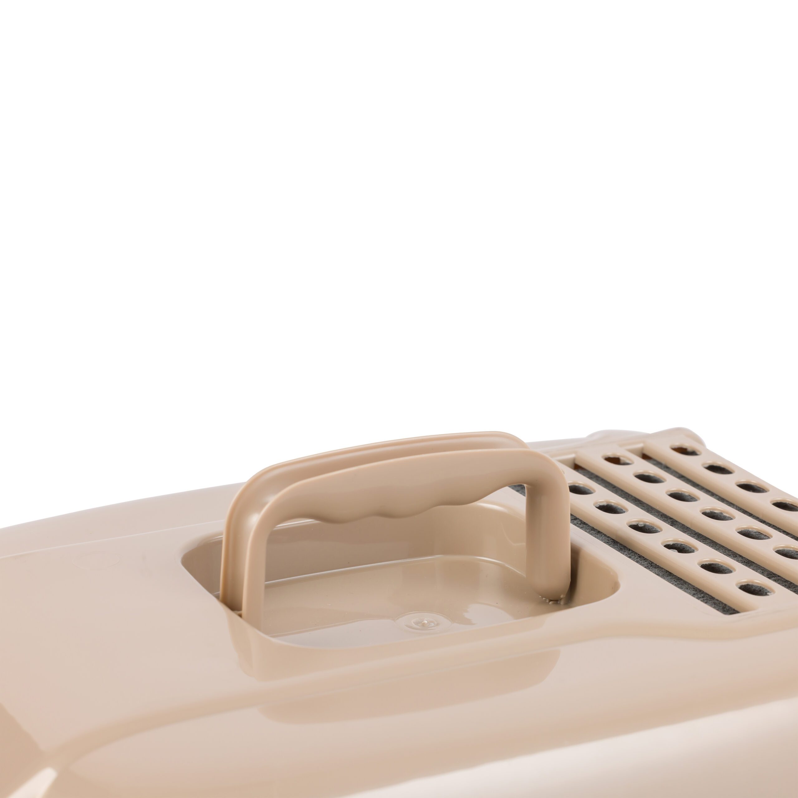 Handle Usage: The built-in handle is intended only for removing the hood during cleaning. Do not use the handle to carry the litter box when full. Carrying a full box by the handle may cause the hood to detach or lead to spills. For safe transport, always support the base with both hands.
